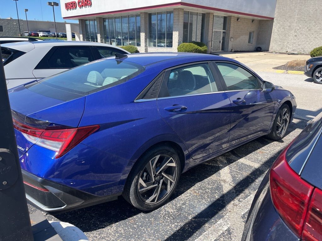 Certified. Completely serviced and safety inspected, buy with confidence, Balance of Factory Warranty, Carfax CERTIFIED Accident Free, Elantra Limited, 4D Sedan, I4, CVT, FWD, Intense Blue, Light Gray Leatherette, 8 Speakers, Alloy wheels, Apple CarPlay & Android Auto, Auto High-beam Headlights, Automatic temperature control, Delay-off headlights, Dual front impact airbags, Dual front side impact airbags, Emergency communication system: Bluelink+, Front dual zone A/C, Fully automatic headlights, Heated door mirrors, Heated Front Bucket Seats, Illuminated entry, Navigation System, Occupant sensing airbag, Outside temperature display, Power door mirrors, Power driver seat, Power moonroof, Security system, Speed-sensing steering, Steering wheel mounted audio controls, Telescoping steering wheel, Tilt steering wheel, Turn signal indicator mirrors, Variably intermittent wipers. 2025 Hyundai Elantra Limited Intense Blue FWD CVT I4