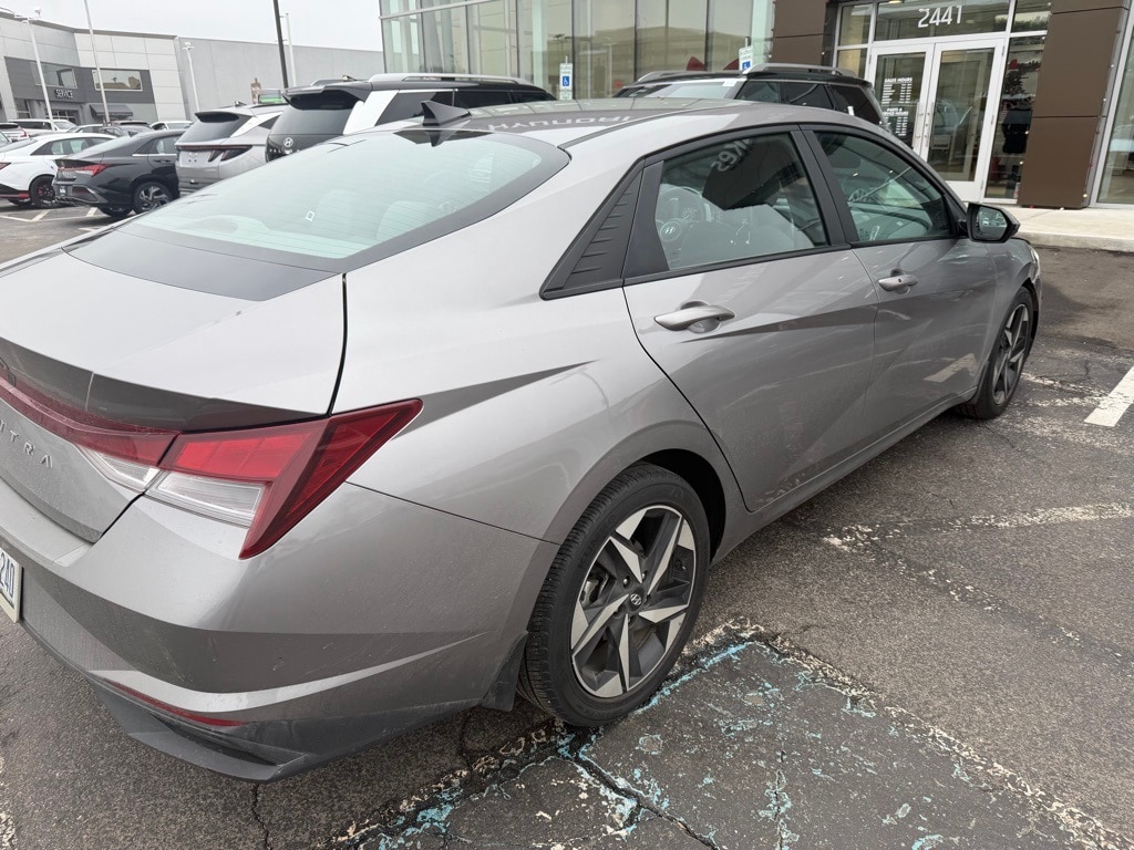 Balance of Factory Warranty, Carfax CERTIFIED Accident Free, NAVIGATION, 2nd Row USB Charge Port, Convenience Package, Electronic Parking Brake, Forward Collision Avoidance Assist, Full 10.25" LCD TFT Cluster, Heated Front Seats, Heated Outside Mirrors, Leather-Wrapped Steering Wheel, LED Interior Lights, Navigation System, Option Group 02, Radio: AM/FM/HD/SiriusXM Audio System, Smart Cruise Control w/Stop & Go, Wheels: 17" x 7.0J Machine Finish Alloy, Wireless Charging Pad. 2023 Hyundai Elantra SEL Fluid Metal FWD CVT I4